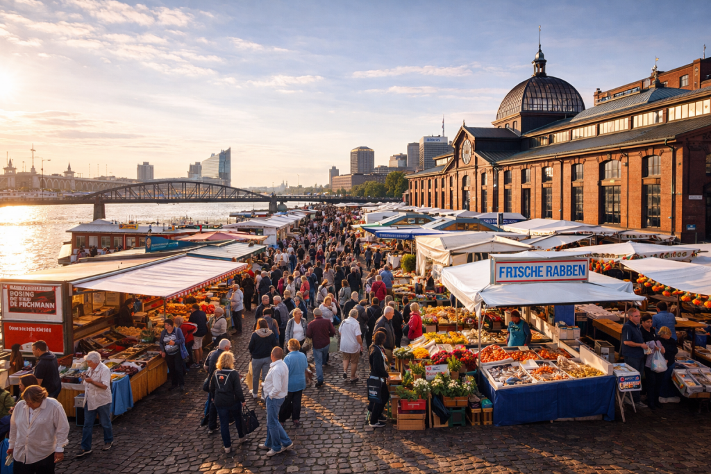 Ein echtes Hamburger Erlebnis am frühen Morgen. Tradition, Musik und Marktstände direkt am Hafen.