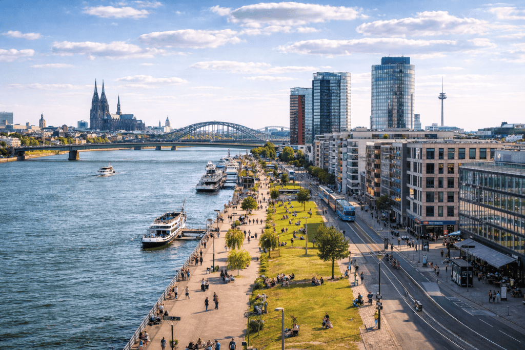 Modern, zentral und vielseitig – Deutz verbindet Rheinlage, Messe, Kultur und urbanes Stadtleben auf der rechten Rheinseite.